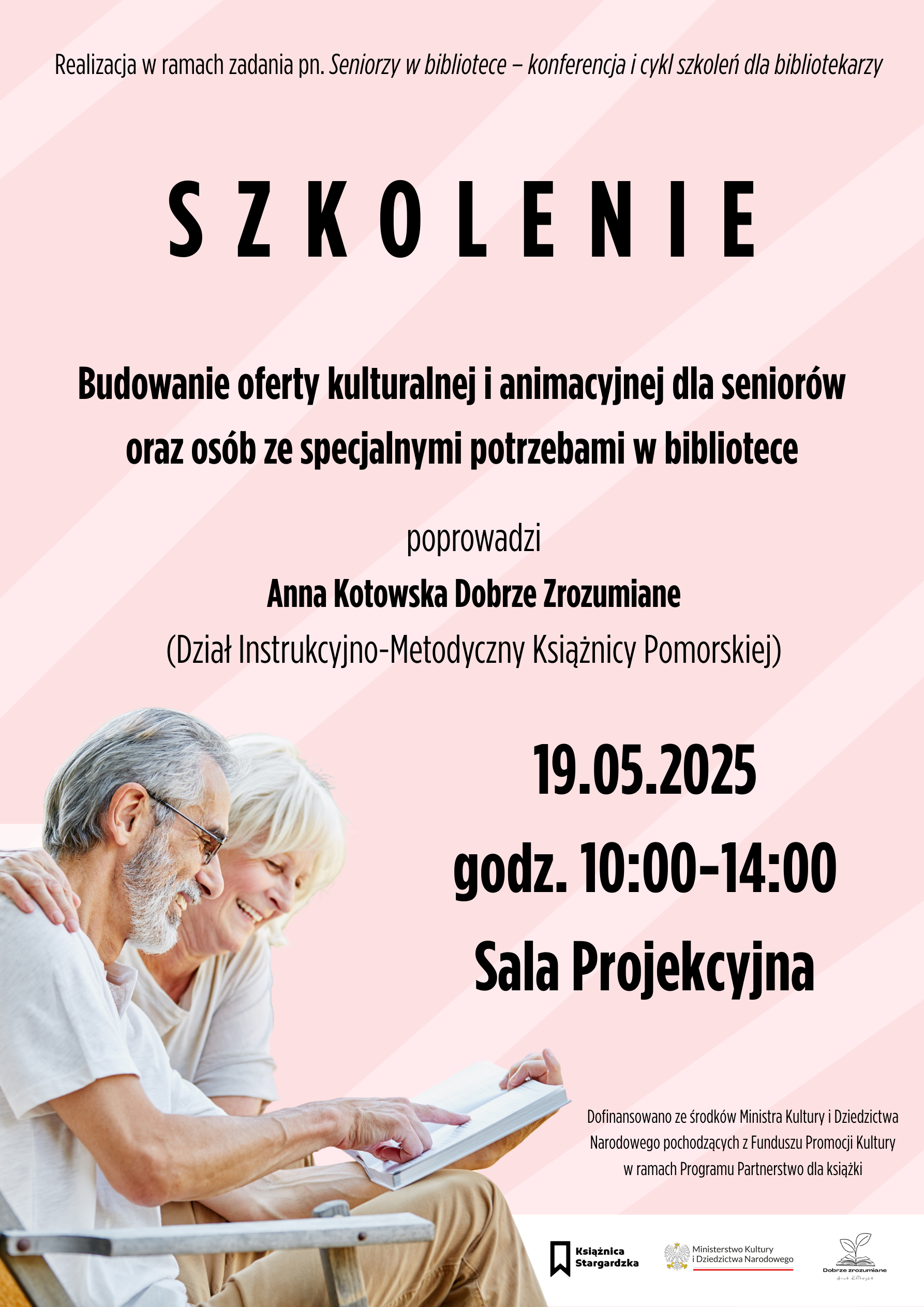 Już w najbliższy poniedziałek 19 maja 2025 r. odbędzie się pierwsze ze szkoleń dla bibliotekarzy powiatu stargardzkiego i ościennych pt.: „Budowanie oferty kulturalnej i animacyjnej dla seniorów oraz osób ze specjalnymi potrzebami w bibliotece”. Poprowadzi je Anna Kotowska Dobrze Zrozumiane. Będziemy uczyć się jak przygotować najlepszą biblioteczną ofertę kulturalną dla srebrnego pokolenia.